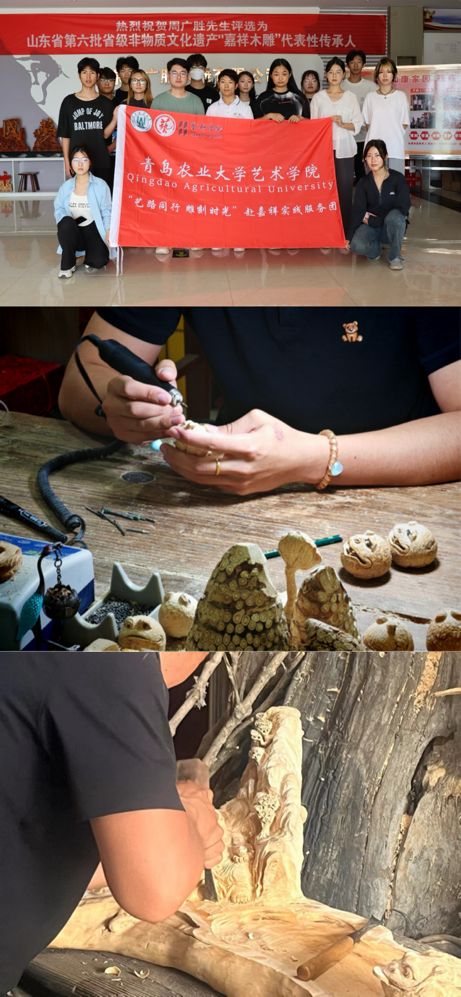 青島農業大學藝術學院“‘藝’路同行 雕刻時光”社會實踐服務團的系列活動,不僅為木雕文化的傳承與創新注入了新的活力,也讓同學們在實踐中鍛煉了自身專業能力,增強了文化自信,充分展現了新時代青年對非物質文化遺產保護與傳承的熱忱與擔當。未來,實踐服務團將繼續努力,為傳承和創新中華優秀傳統文化貢獻力量,讓中華非遺文化在新時代綻放出更為耀眼的光芒,讓木雕這一優秀非遺文化在數字化時代必將煥發出更為絢爛的光彩!