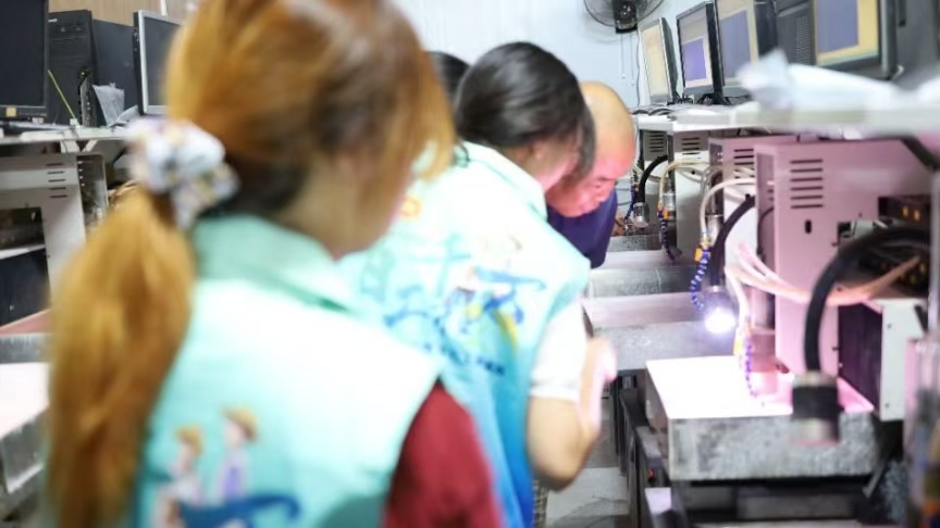 為揭開揭陽玉器產業神秘面紗,實踐團深入玉貓珠寶城加工車間,系統地了解了玉石切割、打磨、設計、雕刻等各個生產環節。在這里,粗糲的原石經過大型機械的切割化整為零,精密的微切機器將原石進一步裁切成片狀,再經由數控玉雕機進行精準雕刻……通過一系列復雜而精細的操作,玉石逐步展現出其內在之美,成員們深刻體會到了玉石從自然形態到藝術品的蛻變之路。此外,玉貓珠寶城負責人向實踐團表示:“‘中國玉都’這張靚麗名片承載了揭陽的文化、歷史與情感。未來,我們將繼續秉承“品質至上、創新致遠”的理念,與更多的合作伙伴攜手共進,讓更多的人了解并喜愛‘中國玉都’。”