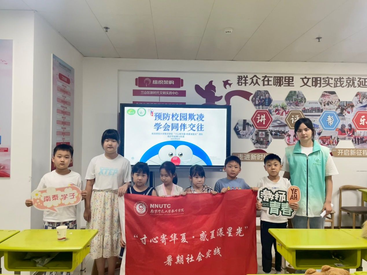 為促進社區青少年的全面發展與健康成長,發揮大學生服務社會的志愿精神,2024年7月和8月,南京師范大學泰州學院“寸心寄華夏·感夏漾星光”團隊協同泰州市計劃生育協會、泰州市疾病預防控制中心,走進山東省臨沂市曹家王莊社區、東北園社區、金雀山街道,以“青春啟航,健康同行”為主題,精心設計了四節內容豐富、形式多樣的課程,旨在全方位、多角度地促進青少年的身心健康與全面發展。從探索性別奧秘、規劃未來之路,到預防校園欺凌、培養良好人際關系,每一節課都緊扣青少年成長的熱點與難點,用生動有趣的方式引導他們認識自我、規劃人生、學會相處、勇敢追夢。