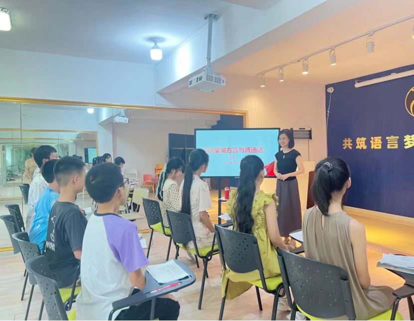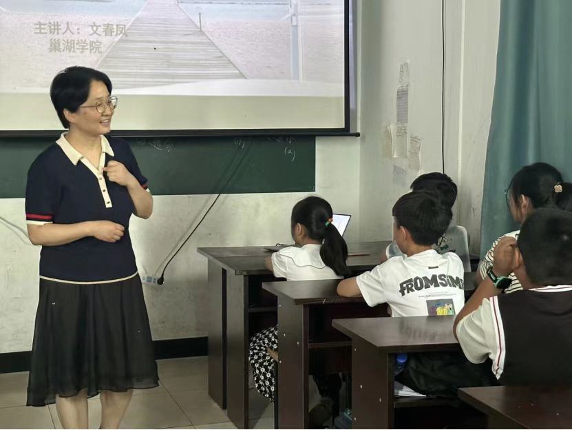 調研團在指導教師程生風的帶領下抵達巢湖市巢湖北路社區,受到工作人員的熱情接待與問候。活動前,團隊成員根據教學班級的學生年齡、普通話水平等情況,精心設計了課程內容與教學計劃。活動伊始,團隊以課堂教學形式開展普通話科普與教育,課程內容豐富多樣。期間,通過組織看圖猜成語、繞口令、朗誦比賽等小游戲,激發孩子們對普通話學習的興趣和熱情,通過普通話和巢湖方言的生活化對話練習,活躍課堂氛圍,加強孩子們對普通話的理解,提升應用能力。