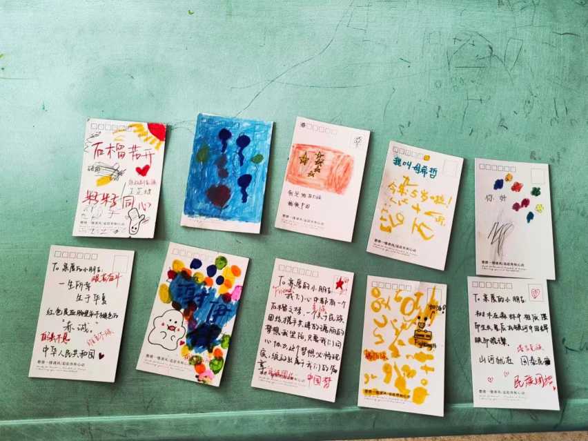 (實(shí)踐團(tuán)成員和孩子們制作的部分連心卡展示——郝晶晶拍攝)