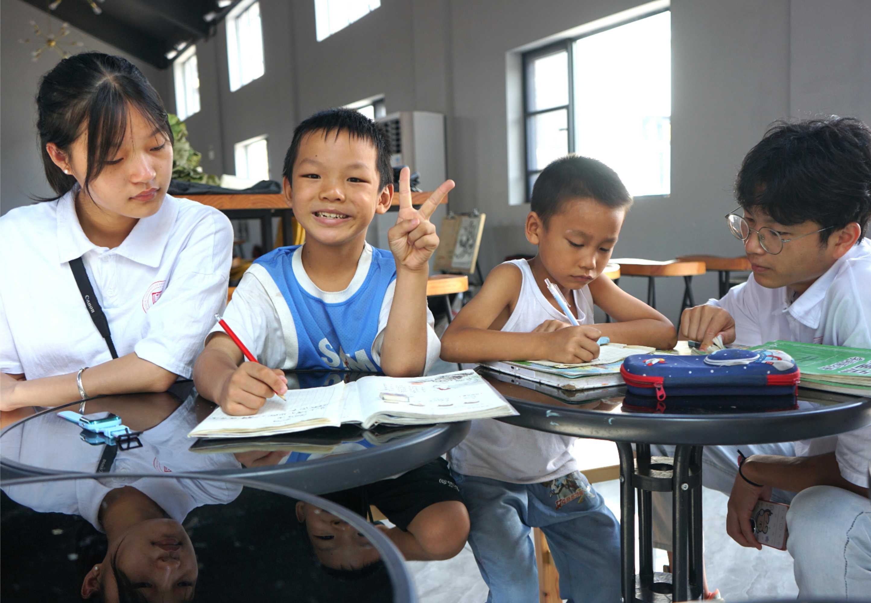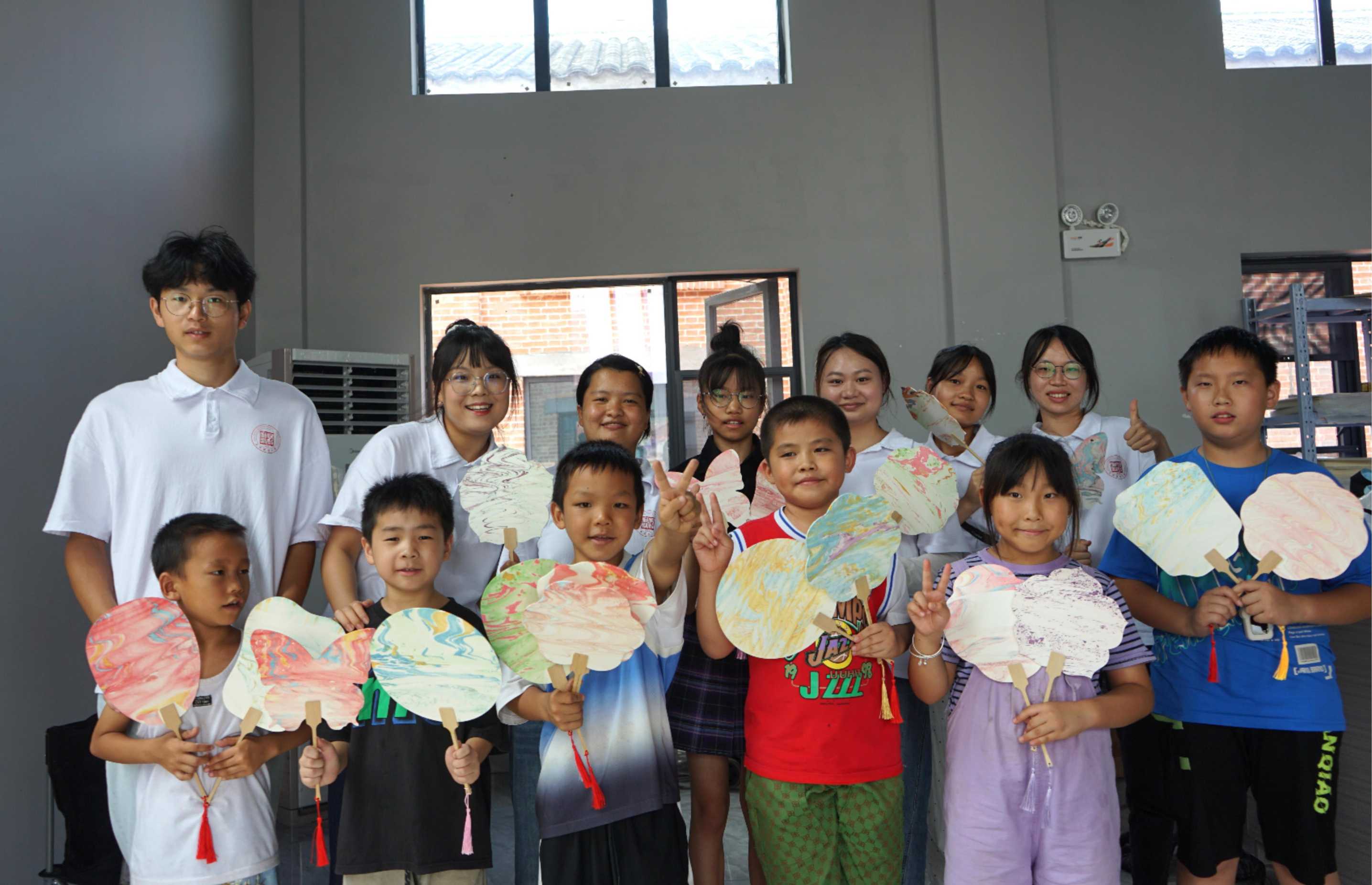四、志愿服務:愛心志愿行 服務暖人心8月23日,實踐隊在甘竹鎮兒童活動基地開展了“童心筑夢 智啟未來”主題活動。隊員們為甘竹鎮留守兒童提供學習輔導和手工制作漆扇體驗,激發了孩子們對知識的興趣與創造力。