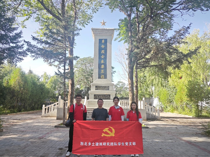 除了調(diào)研獲取資料外,西北鄉(xiāng)土建筑研究團(tuán)隊還在貴德縣歷史建筑革命列士陵園中以“致敬革命先烈”為主題進(jìn)行紅色教育學(xué)習(xí),陵園中立有許多革命烈士墓碑,此情此景讓實踐隊成員心生敬仰,革命烈士英魂永存吾等青年心中!