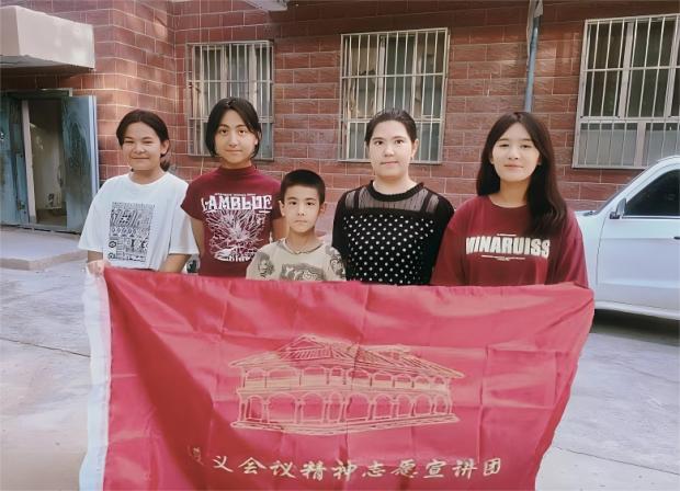 雙語宣講服務(wù)當(dāng)?shù)鼐用瘛?/strong>結(jié)合新疆維吾爾族自治區(qū)的語言特色,隊(duì)員木義色爾·艾尼完對紅色精神歷史資料進(jìn)行翻譯,用漢語+維吾爾語的雙語宣講方式將無形精神內(nèi)涵可視化,精準(zhǔn)傳達(dá)宣講內(nèi)容,準(zhǔn)確闡釋紅色精神。