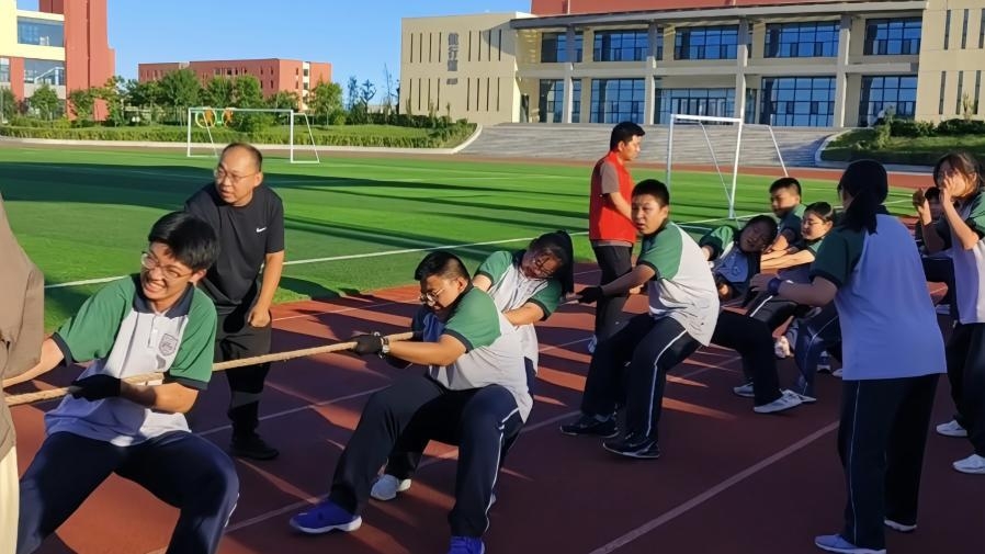 為了豐富同學(xué)們的課余活動(dòng),加強(qiáng)體質(zhì)鍛煉,增強(qiáng)集體意識(shí)和團(tuán)結(jié)意識(shí),讓同學(xué)們?cè)诨顒?dòng)中成長(zhǎng),在競(jìng)爭(zhēng)中團(tuán)結(jié),在比賽中熱愛(ài)運(yùn)動(dòng),智行筑夢(mèng)暑期社會(huì)實(shí)踐團(tuán)組織學(xué)生們進(jìn)行拔河比賽。同學(xué)們握緊繩索,前腿直跨,后腿弓步,用力踩地,重心后推。同學(xué)們使出全力為勝利而拼搏,用實(shí)際行動(dòng)生動(dòng)詮釋了中華體育精神的團(tuán)結(jié)協(xié)作和頑強(qiáng)拼搏。賽后同學(xué)們定會(huì)將奮勇拼搏、力爭(zhēng)上游的信心和勇氣延伸到學(xué)習(xí)和生活中,綻放光彩。