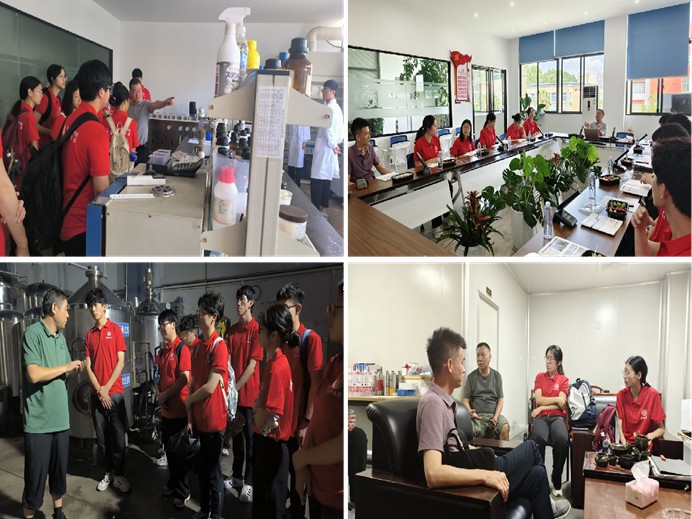 “尋夢致知”,深入了解化材類企業的生產運作。實踐團隊對同舟縱橫公司進行了深度考察,該公司作為國家級高新技術企業,業務涵蓋化學材料領域的多個專業就業崗位。在化學化工學院98級院友藍云才的帶領下,實踐隊員親身經歷了陶瓷膜生產的全過程,深刻認識到國產原材料與國際先進水平的差距,并領悟到技術革新的必要性。在廈門市嘉寘宇酒業有限公司,在釀酒師鄭師傅的指導下,隊員們見證了精釀啤酒的工藝流程,并品嘗了不同風味的產品,從中理解了生產條件對產品質量的影響。