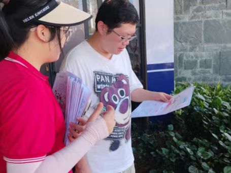 活動現場,隊員們熱情、專業,用通俗易懂的語言向每一位前來咨詢的居民和游客講解國家資助和助學貸款政策的具體申請流程及注意事項。通過圖文并茂的宣傳冊、生動形象的案例分享以及一對一的答疑解惑,確保信息傳達的準確性和有效性,讓周邊居民及往來游客對國家資助政策有了更為深刻的了解。更有不少家庭在了解到相關政策后,表示要積極準備材料,申請相關資助,以緩解家庭經濟壓力,為孩子創造更好的學習條件。