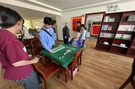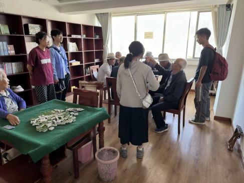 在參觀的過程中,實踐團成員發現,老年人服務中心不僅“硬件”建得好,還“軟件”配得足,內部設有圖書閱覽區、棋牌室等功能室和書法品茶區。另外,老年人服務中心使社區老年人同住一個區,同玩一棟樓,實現互嵌試發展。把維護各族群眾現實利益作為社區服務的落腳點,在關注多民族共同發展的基礎上增強民族團結和交融的意識,從而為鑄牢中華民族共同體意識創造動力源泉。服務中心打造出了一個能為老年人提供就餐、休息、娛樂、閱讀等全方位的服務新陣地,既豐富了老年人的精神文化生活,又為大家鑄牢中華民族共同體意識提供了重要平臺,真正搭起群眾的暖心地。