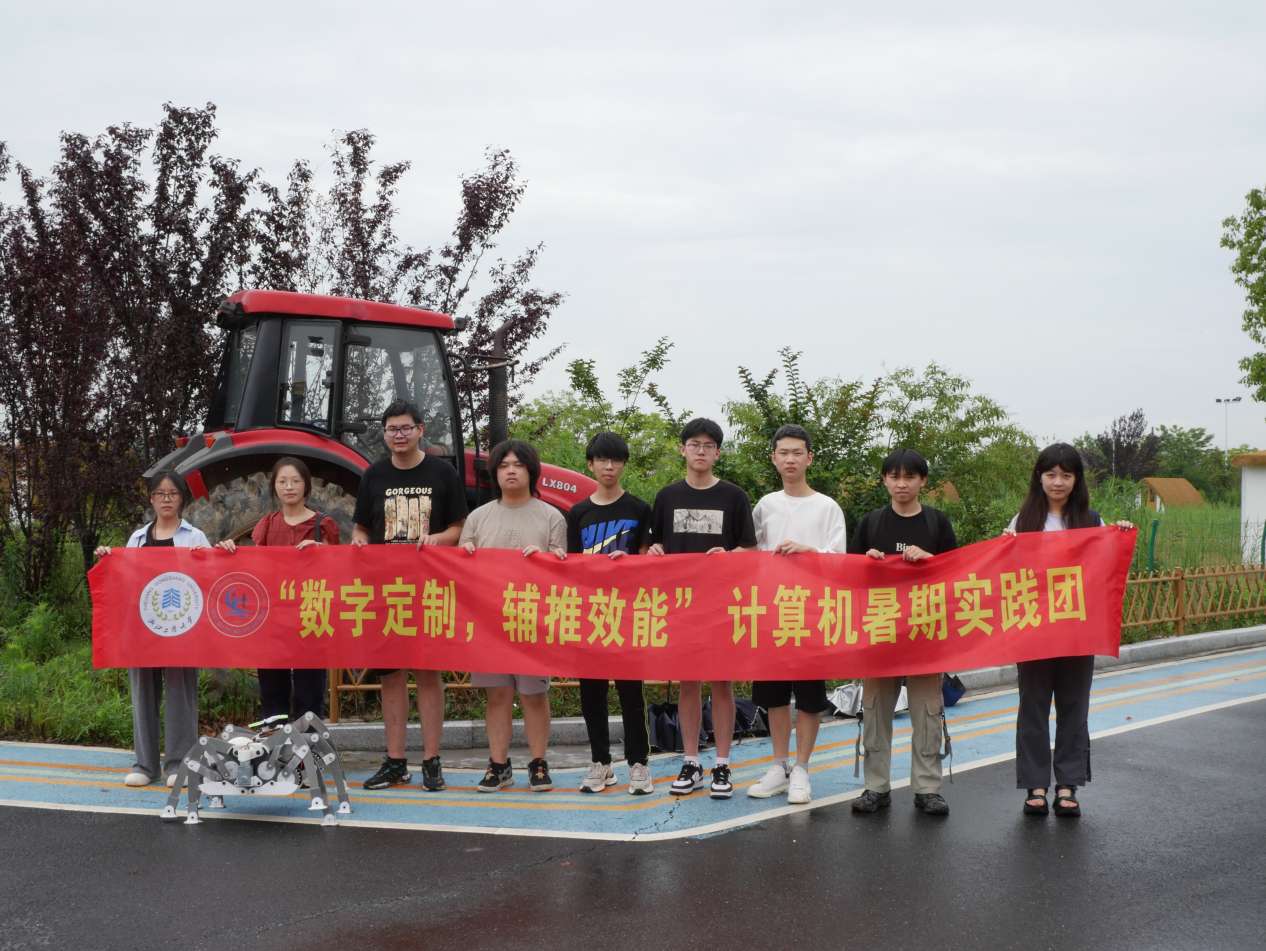 “數(shù)字定制,輔推效能”實踐團成員與“九眼智蛛”足式農(nóng)業(yè)套種機器人合影