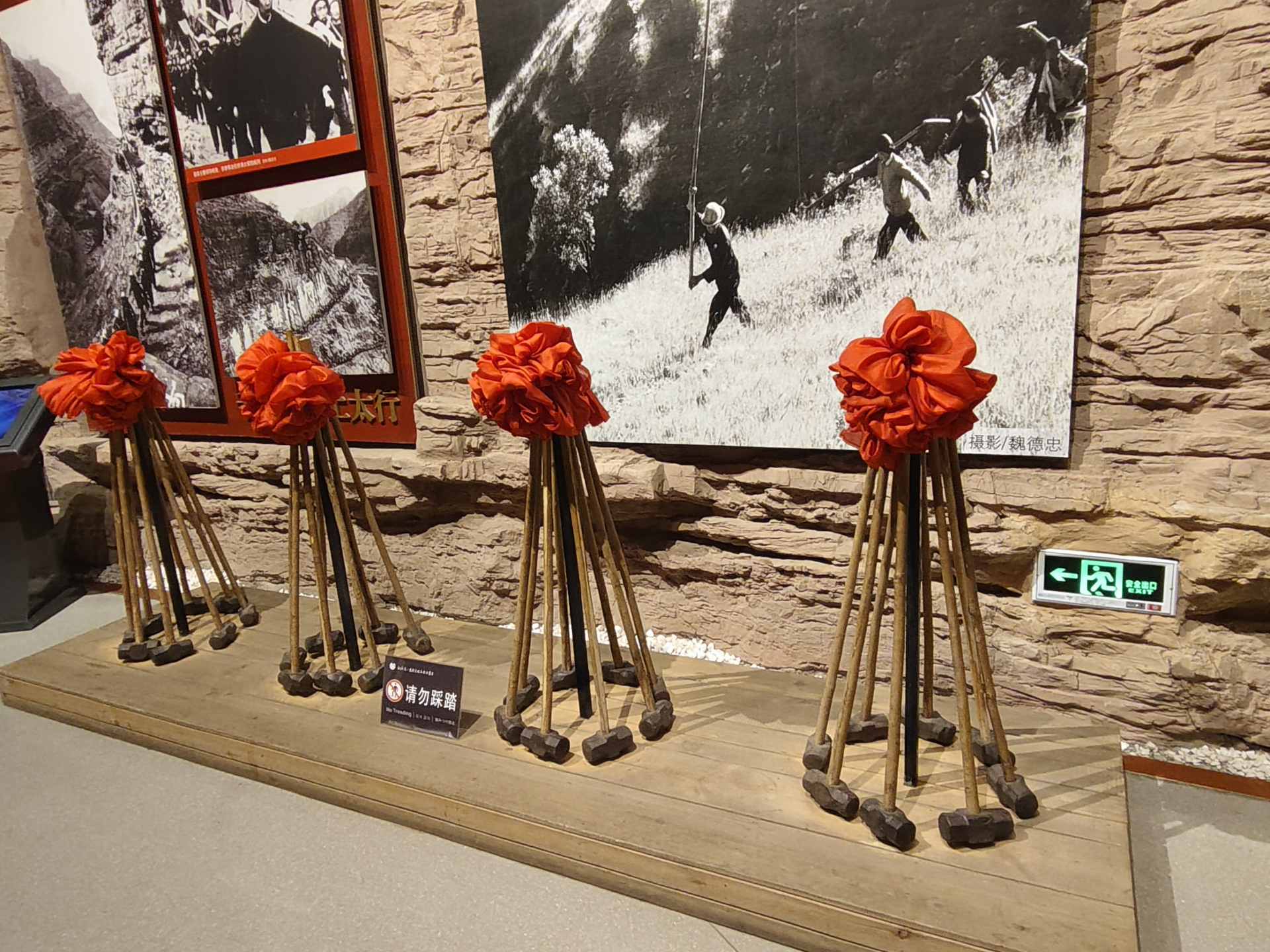 紀念館中陳列著豐富的歷史照片以及實物展示,充分展現了紅旗渠的建設過程充滿了艱辛與挑戰,記錄了建設者們冒著嚴寒酷暑,在懸崖峭壁上揮汗如雨,用雙手開鑿出一條條渠道。他們臉上雖然寫滿了疲憊,但眼神中卻透露著堅定與希望。在參觀過程中,實踐隊成員不禁感嘆林縣人民的吃苦耐勞和意志堅定。