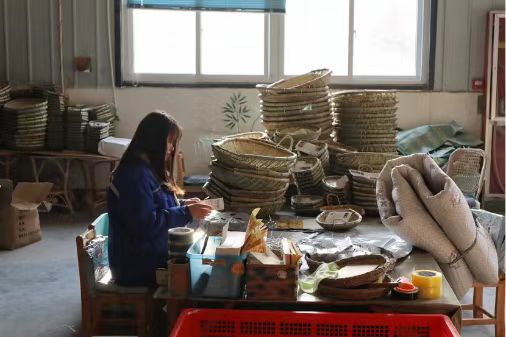 圖為團隊成員參觀漢中藤編廠工編制藤編工藝品時拍攝的照片。