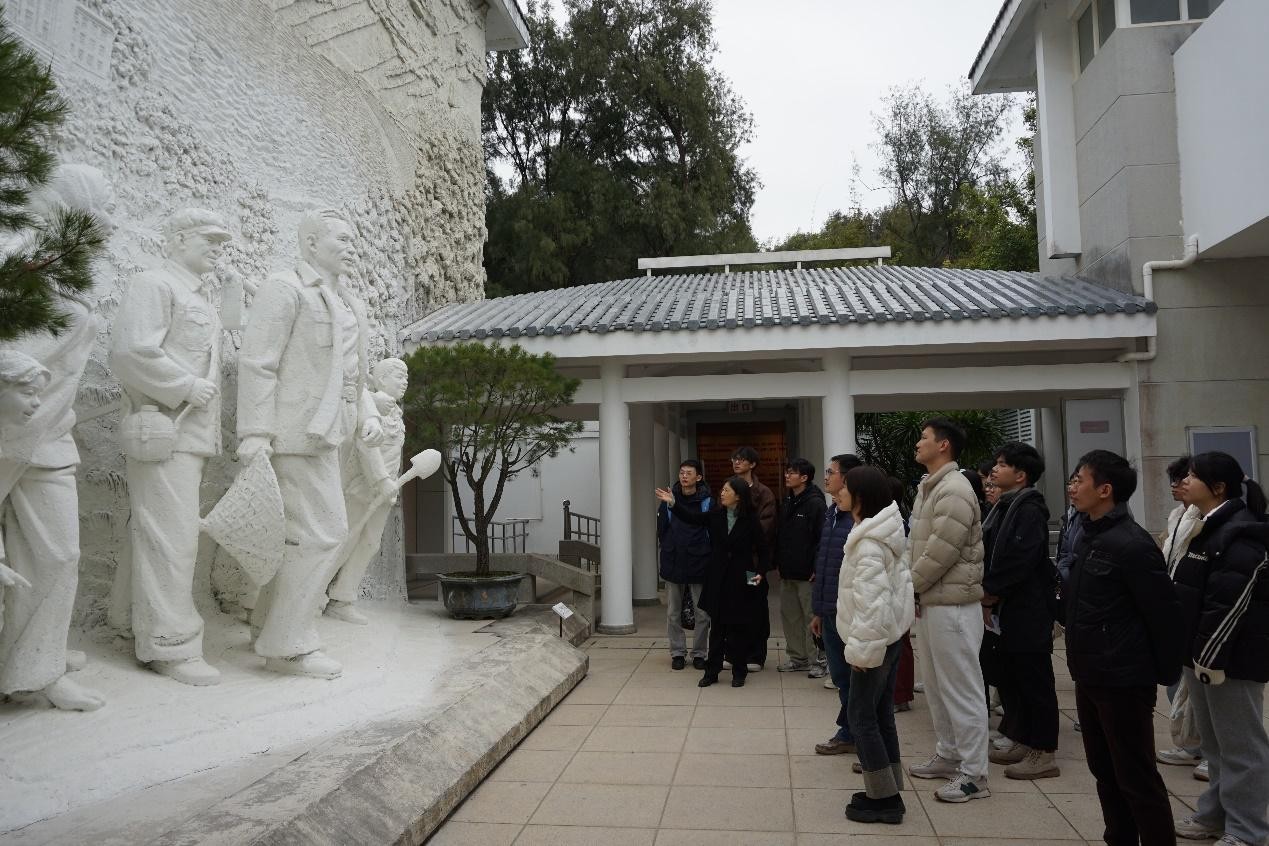 圖3為實踐隊師生敬仰谷文昌雕塑 詹慧供圖