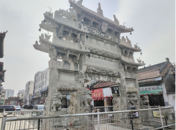 實(shí)踐首站,隊(duì)員們來到全國重點(diǎn)文物保護(hù)單位百壽坊與百獅坊。在講解員的帶領(lǐng)下,隊(duì)員深入研習(xí)兩座清代石坊的歷史淵源與藝術(shù)價(jià)值。始建于1765年的百壽坊,以百個(gè)變形篆體"壽"字雕飾聞名,其正間額枋的祥云飛鶴、次間浮雕的鸞鳳對(duì)翔,傳遞著"福壽萬年"的祥瑞寓意;而1778年落成的百獅坊則以百獅戲珠的靈動(dòng)之姿被譽(yù)為"天下第一坊",纏枝牡丹的透雕技藝深入盈尺,游龍祥云的動(dòng)態(tài)刻畫栩栩如生。隊(duì)員們借助設(shè)備對(duì)石坊的雕刻技法、紋飾符號(hào)進(jìn)行記錄,結(jié)合文獻(xiàn)資料梳理牌坊承載的孝悌文化、節(jié)烈觀念,深刻體會(huì)到古代工匠"以刀代筆"的藝術(shù)造詣與中華美學(xué)的精神內(nèi)核。