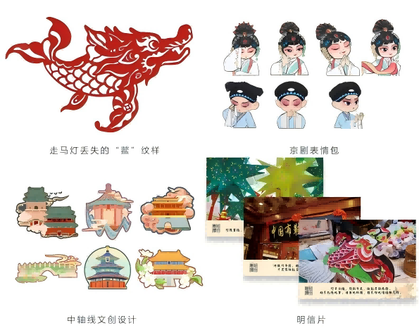 在文化傳承的具體實踐中,拾文思源實踐隊結合專業特長,解決傳承難題,提出創新方案。實踐隊幫助傳承人恢復丟失“鰲”的紋樣,切實解決傳承面臨現實問題;實踐隊設計規劃了“中軸線·非遺”地圖,推動傳統文化的可視化傳播;還設計了京劇動態表情包,將傳統文化融入現代生活;同時也設計了中軸文化特色的紋樣圖案,開發了文創產品,使中軸文化在現代社會中煥發新的生命力,廣泛傳播。