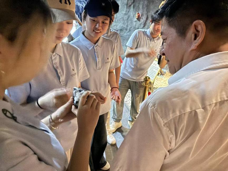 實(shí)踐隊(duì)首站探訪“世界鎢都”博物館,在館長的講解下,通過珍貴的文物、詳實(shí)的史料和生動(dòng)的場景復(fù)原,系統(tǒng)學(xué)習(xí)了江西鎢礦從古代采礦雛形到近現(xiàn)代工業(yè)化開采的輝煌歷程。銹跡斑斑的工具、早期鎢砂樣本等展品,無聲訴說著礦工們的艱辛奮斗與國家工業(yè)發(fā)展的滄桑巨變,隊(duì)員們深刻認(rèn)識(shí)到鎢礦作為國家戰(zhàn)略資源的重要地位。緊隨其后,隊(duì)員們深入西華山國家礦山公園及礦坑遺址。昔日塵土飛揚(yáng)的礦區(qū)已蝶變?yōu)榫G植覆蓋的生態(tài)公園,隊(duì)員們實(shí)地考察了礦坑、舊址和礦窿遺址,觸摸銹蝕的設(shè)備,翻閱泛黃的采礦日志,在時(shí)空對(duì)話中感受萬人采礦的壯觀歷史與中國鎢業(yè)從“黑色礦產(chǎn)”到“綠色礦產(chǎn)”的轉(zhuǎn)型奇跡。西華山百年興衰所承載的艱苦奮斗精神與深厚礦冶文化,深深烙印在每位隊(duì)員心中。