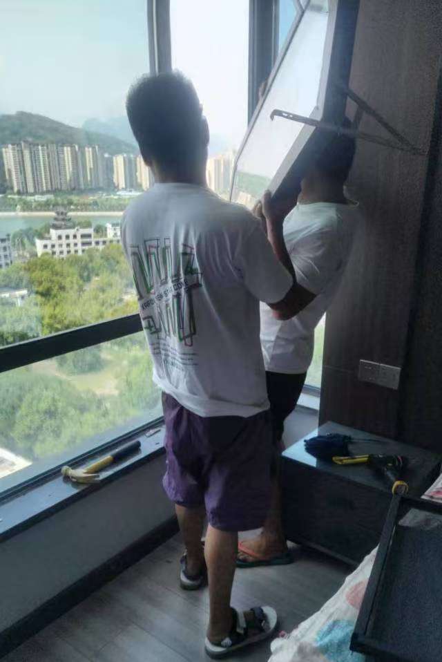 所幸覃同學反映問題后,工人師傅迅速行動。即便烈日炎炎,他們也第一時間上門。維修現場,師傅們腳踩窗臺,手持工具,專注細致地排查、修復,全力消除安全隱患。
