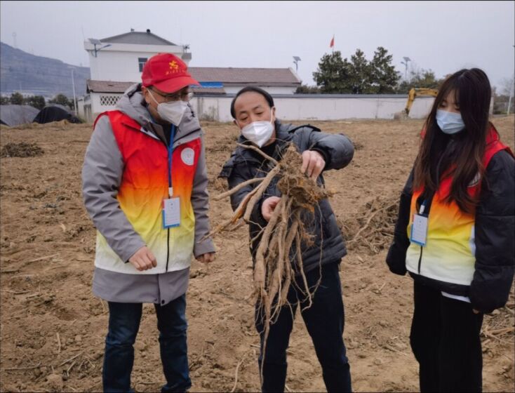 團隊在種植基地向種植戶學習認識虎杖。中國青年通訊員 王玥 供圖。