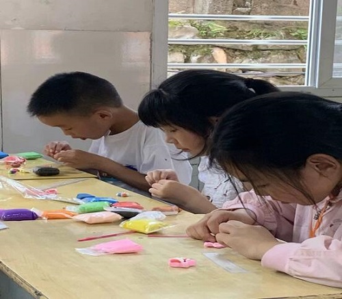 圖為同學(xué)們在粘土課根據(jù)老師所教放飛思維,捏造自己喜歡的東西。