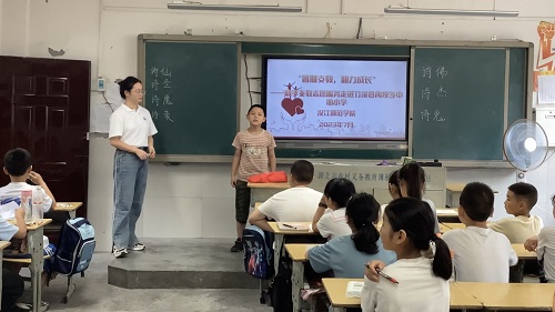 7月10日,為展現詩詞魅力,培養學生對詩詞文化的興趣,傳承國學經典,弘揚中華優秀傳統文化,漢江師范學院“童心童行”助力鄉村振興社會實踐小分隊在湖北省十堰市竹溪縣向壩鄉中心小學開展了一場精彩絕倫的詩詞小比賽。實踐隊員話音未落,一雙雙小手齊齊高舉,比賽的帷幕在一道道稚嫩的“老師,我來!”中緩緩拉開。學生爭相舉手,有的甚至都站起來了,比賽進行的十分激烈。“下一個‘詩魔’的詩!”,“《大林寺桃花》唐·白居易,人間四月芳菲盡,山寺桃花始盛開……”。