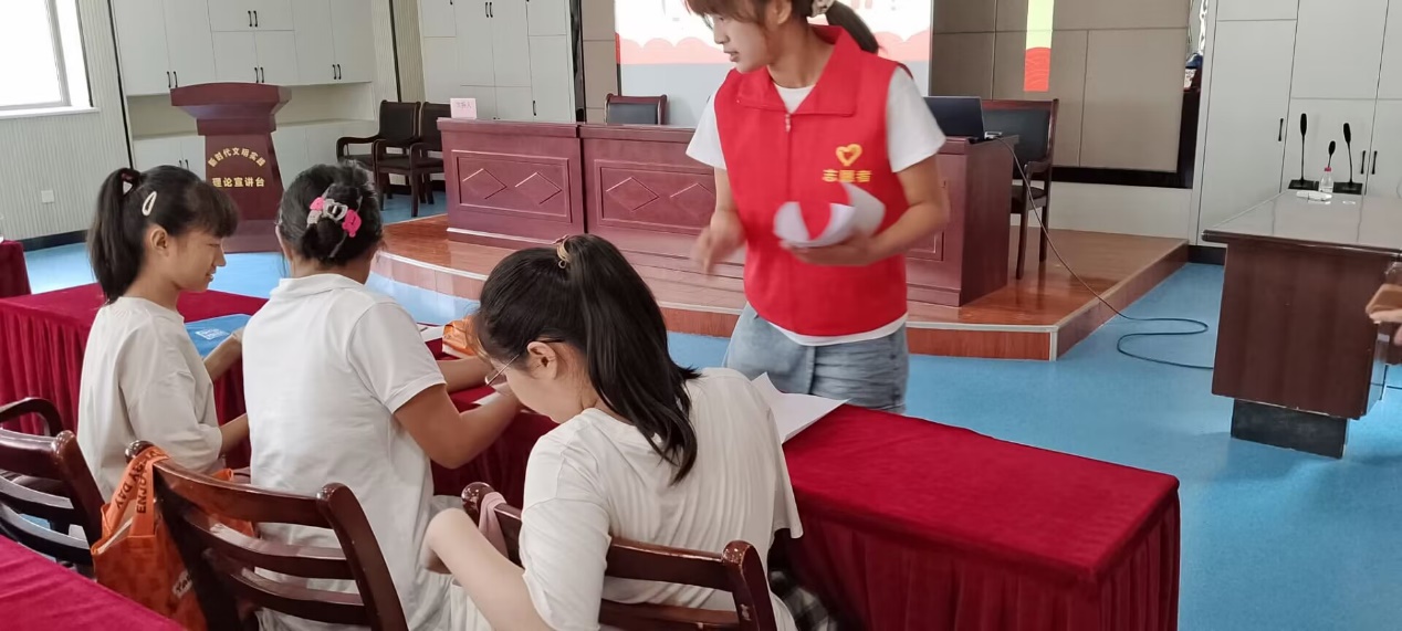 圖為實踐隊員給小朋友們分發繪畫紙張。通訊員 陳露 供圖