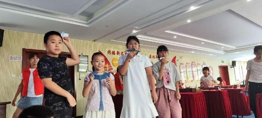 圖為實踐隊員與小朋友們進行燕子紙飛機活動。通訊員 陶京雪 供圖