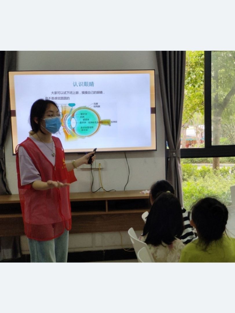 圖為志愿者帶小朋友們學習保護眼睛的知識。余平樂 供圖