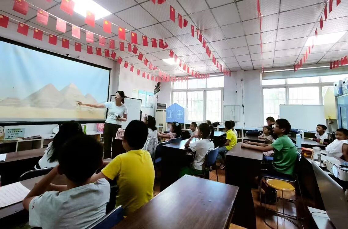 為了豐富孩子們的課程,支教隊員們精心設計了多個教學課程和拓展課程。在語文課堂上,支教隊員們寓教于樂,用趣味的方式講解課文,激發了孩子們的學習興趣。在數學課堂上,支教隊員們采用動手實踐操作的方式,讓孩子們更加直觀地理解數學知識,計算能力突出的孩子們更是會獲得老師準備的小禮物,在動手與激勵中完成任務;在藝術課堂上,色彩交匯,載歌載舞,一陣陣的歡聲笑語,好似孩子們手中繪畫的水彩色比天邊的云彩更為絢爛,舞蹈的旋律蕩漾在每個人的心中,快樂得在整個青春中都有了獨特的旋律。