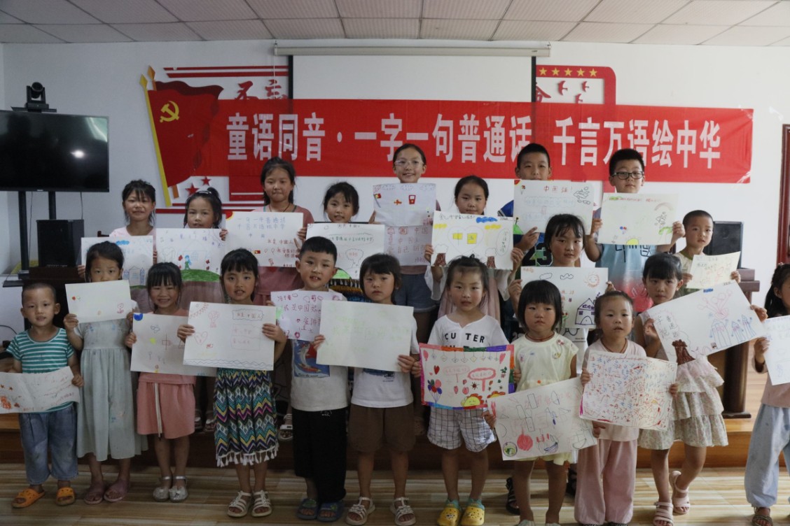 課堂在村委會會議室舉行,志愿者們通過多種創(chuàng)意的教學環(huán)節(jié),讓普通話學習變得生動活潑。課堂內(nèi)容包括學習拼音字母、論語解析、課堂朗誦以及趣味繪畫教學等,以趣味性和互動性為主要特點,吸引小朋友們的興趣。本次課堂的主講人是志愿者代表張秋玲,她以獨特的親和力與小朋友們迅速建立了聯(lián)系,成功調(diào)動了小朋友們的學習積極性。