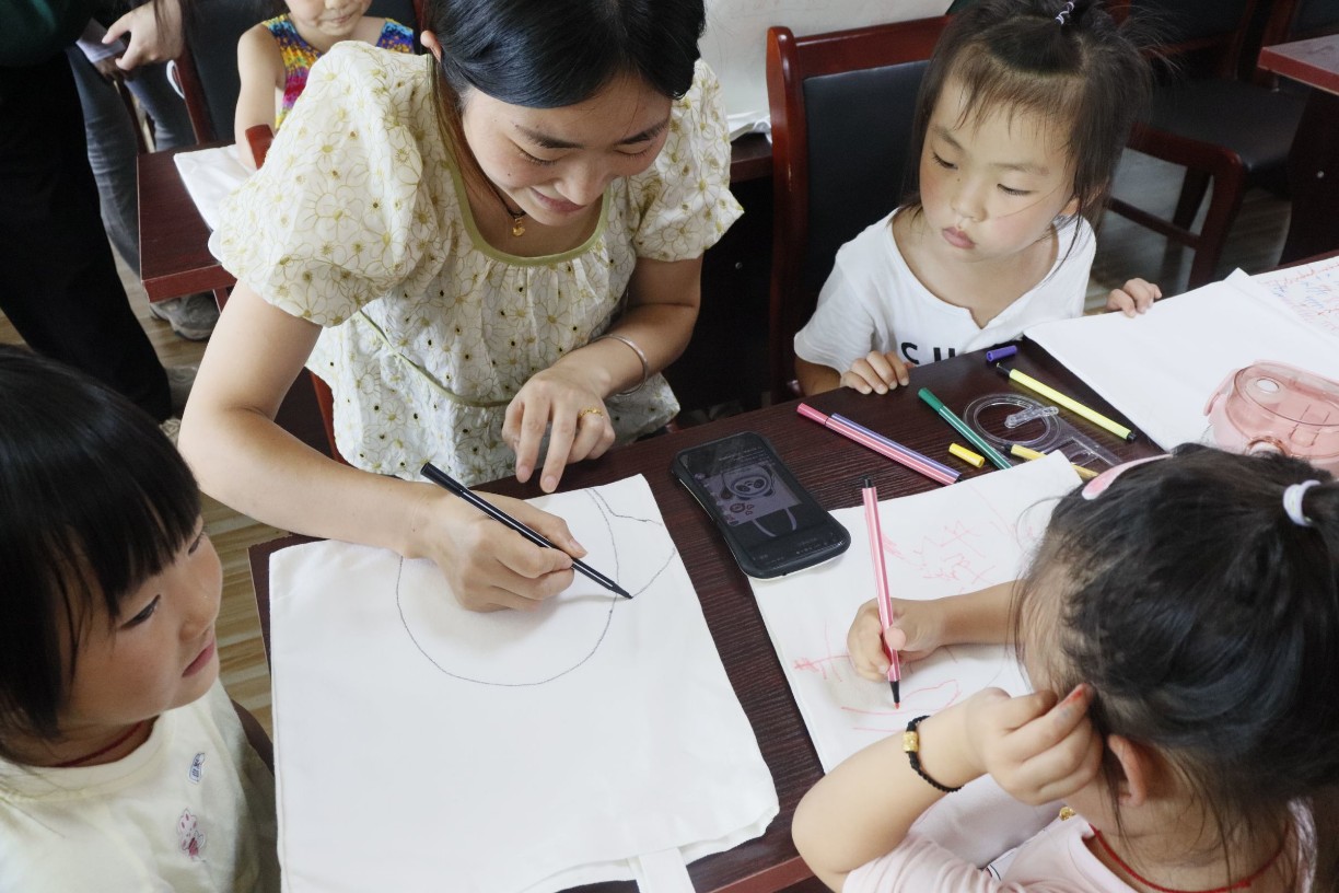 隨著小朋友們的學習熱情,志愿者們還帶來了趣味繪畫教學。他們分別混合在小朋友中間指導他們繪制海報、書寫名字,還有繪畫帆布包等創(chuàng)意活動。這一互動式的繪畫環(huán)節(jié)進一步激發(fā)了小朋友們的創(chuàng)造力和興趣。志愿者們用耐心的指導和關心,讓每個小朋友都體驗到創(chuàng)意的樂趣。在活動結束后,小朋友們?nèi)砸猹q未盡,流連忘返。并與自己的作品合影留念,笑聲和掌聲交織在一起,營造出溫馨的學習氛圍。