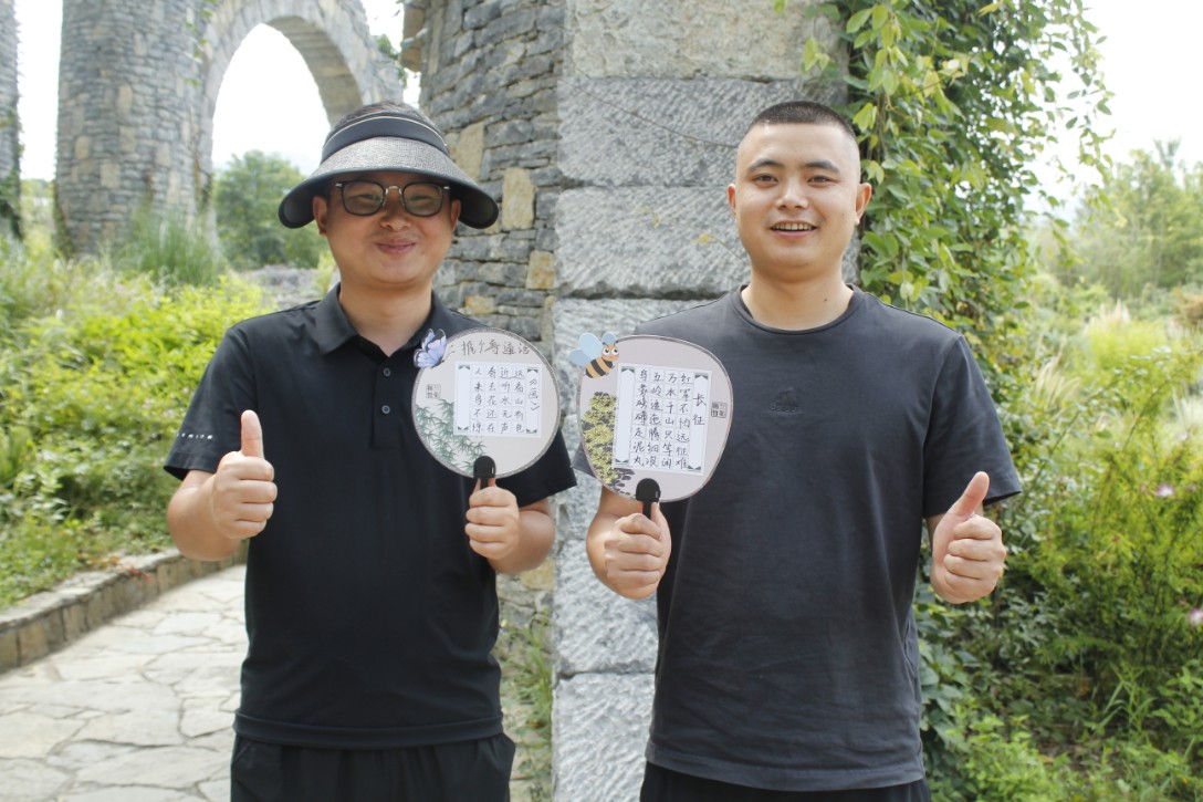 實(shí)地調(diào)研過(guò)程中,篤行團(tuán)隊(duì)成員們深入了解了紅溪村疊石花谷的旅游發(fā)展現(xiàn)狀。通過(guò)拍攝旅游宣傳片,他們將村莊的美麗風(fēng)景、獨(dú)特文化和豐富歷史呈現(xiàn)給更多人,為推動(dòng)村莊的旅游發(fā)展提供了有力支持。在景區(qū)門口,篤行團(tuán)隊(duì)成員們與游客們親切互動(dòng),發(fā)放普通話宣傳頁(yè),與游客共同繪制紙扇,書寫文字,為普及普通話、傳承中華文化添磚加瓦。這一互動(dòng)方式贏得了游客們的大力贊賞,同時(shí)也提高了游客們對(duì)普通話學(xué)習(xí)的興趣。