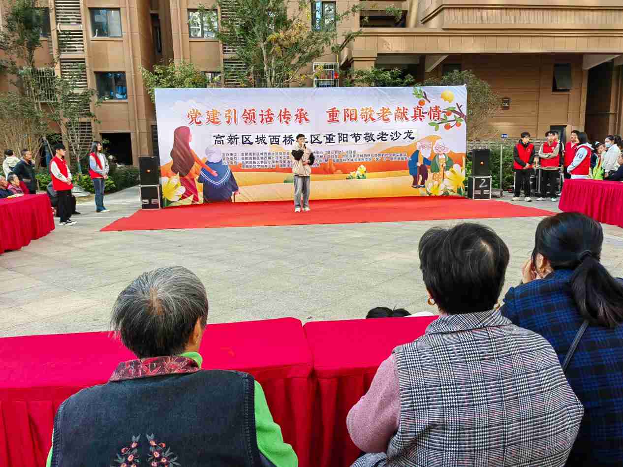 2023年10月21日,在志愿服務部部長陶文昊以及副部長的帶領下,13位志愿者共同協助活動的完美開展。上午八時,志愿者到達現場并幫助搭建平臺和擺放桌椅,老年居民入座后志愿者發放敬老禮品。活動正式開始按照古風舞、武術表演、健身操、《聽我說謝謝你》大合唱、舞劍、歌曲《十年》、歌曲《暖暖》、歌曲《說唱百家姓》等12種表演節目依次進行,這些表演給老年人日常生活增添了許多樂趣,樂在其中。