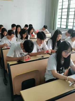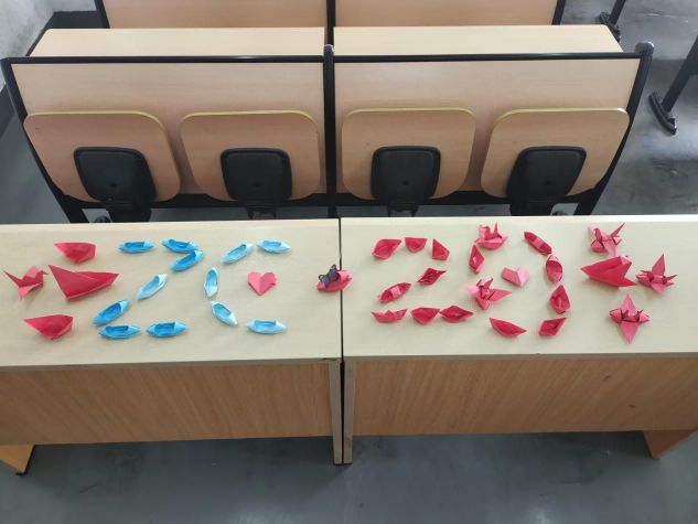 在“一管秋毫落情深,一葉紅船寄福語”活動中,團(tuán)支書組織團(tuán)員們將自己對學(xué)院二十周年校慶的祝福語寫在紅紙上,隨后將紅紙折成各種式的船,排成“20”字樣。船能載物,亦能載情,作為物流專業(yè)的學(xué)子,鋼鐵之身的交通工具雖然冰冷,但此刻身為情感寄托的它們,溫暖無比。