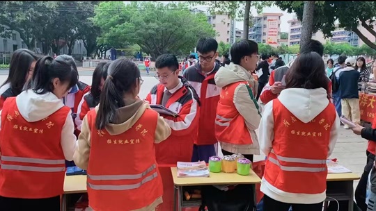 在進入母校后,領先小隊展開了熱烈的宣傳。在宣傳之前,隊伍進行了第二次小組會議,隊長明確了線下宣傳的注意事項,并進行此次宣傳的任務細致分配。開始之后,隊伍完成宣傳攤位的禮品和手冊擺放,微笑迎接著每一位到來詢問的同學,以熱情而細致的態(tài)度為他們介紹了嶺南師范學院的教學特色,師資力量和生活體驗等,在詢問與答疑過程中,隊伍根據(jù)每位同學的不同學科和心儀的專業(yè),派出專業(yè)成員介紹學校的優(yōu)勢與專業(yè)的發(fā)展前景、方向等,為每一位高三學子提供了最細致和深入的宣傳介紹,幫助他們進行了解專業(yè)與學校,也為他們提供了更多的選擇。