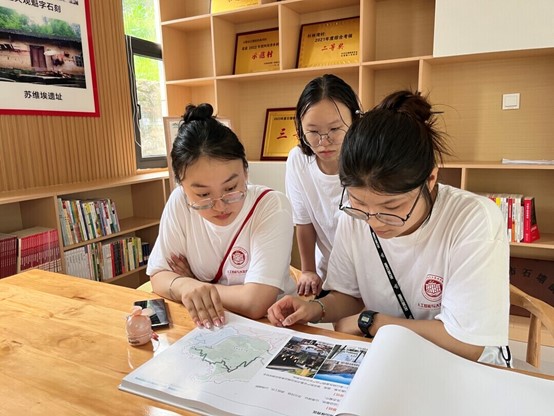 圖為團(tuán)隊(duì)隊(duì)員調(diào)研杉林灣村振興成果和鄉(xiāng)村建設(shè)總體規(guī)劃。 譚力川 攝