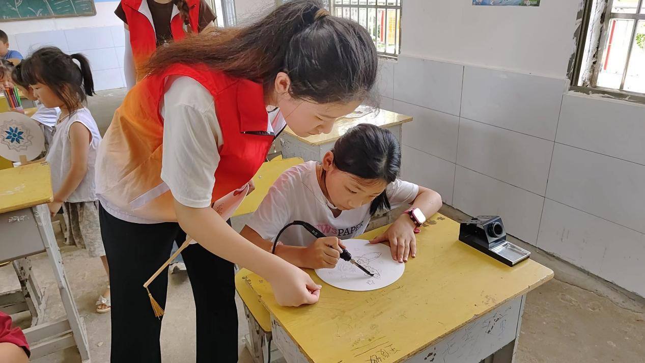 (圖為志愿者指導孩子們嘗試寶慶烙畫 通訊員 吳澤輝 攝)