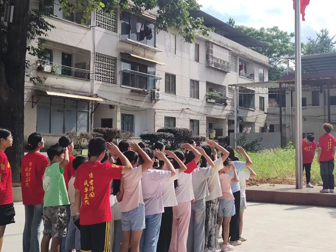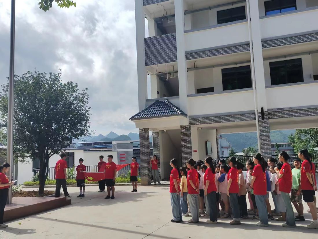 7月28日,一個陽光明媚的清晨,南京財經大學國際經貿學院“漓漓圓上草”支教團隊于靈川縣海洋鄉中心校舉行了一場莊重的升旗儀式。此次活動旨在弘揚愛國主義精神,增強學生們的集體意識和責任感,為他們的成長注入積極向上的力量。升旗儀式在學校操場進行,全校師生齊聚一堂。隨著激昂的國歌聲響起,鮮艷的五星紅旗徐徐升起,孩子們肅立致敬,眼中閃爍著對祖國的熱愛與自豪。支教團隊的成員們也全程參與,體現了對國家和教育事業的尊重。通過這次升旗儀式,“漓漓圓上草”支教團隊成功地將愛國主義教育融入到日常教學中,讓孩子們在潛移默化中樹立起對祖國的熱愛與歸屬感。這一刻,不僅是一種儀式,更是對未來希望的寄托與期盼。
