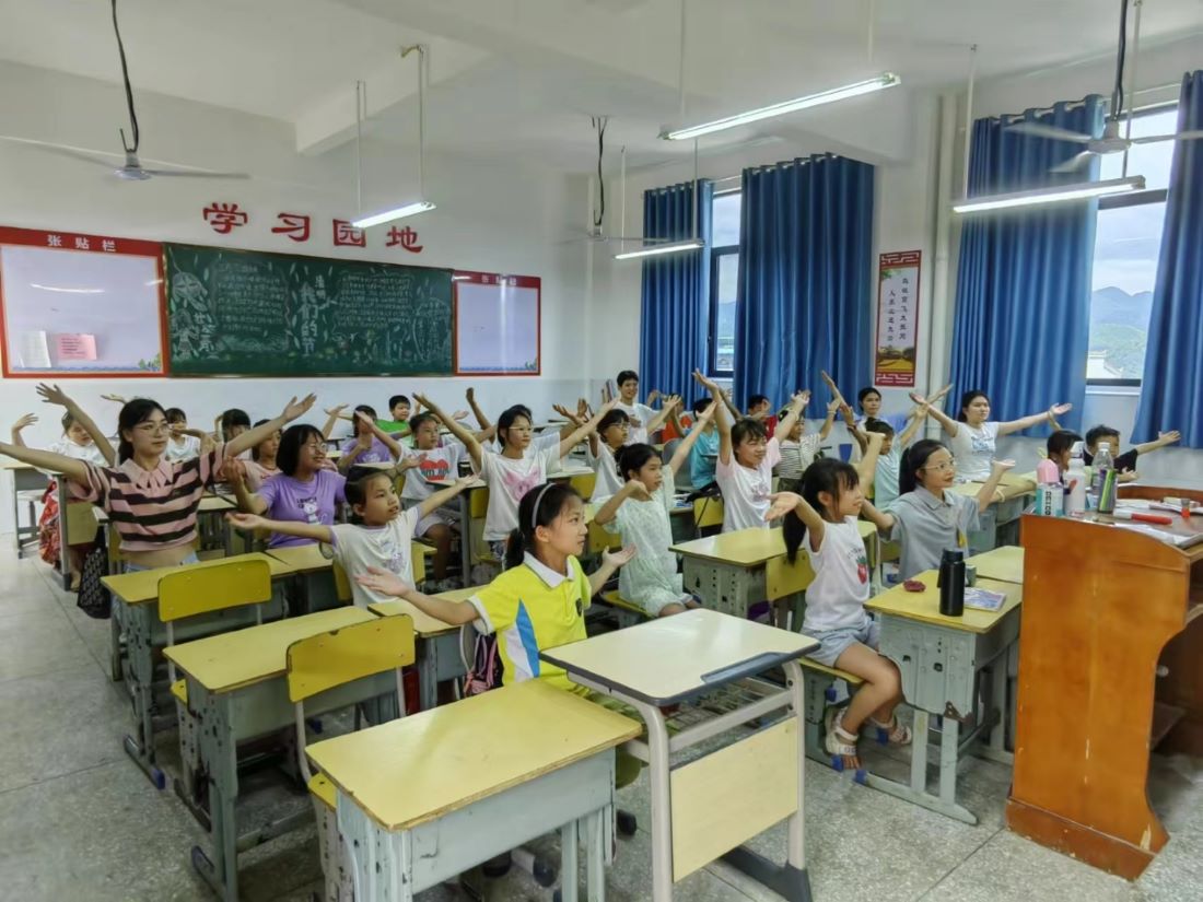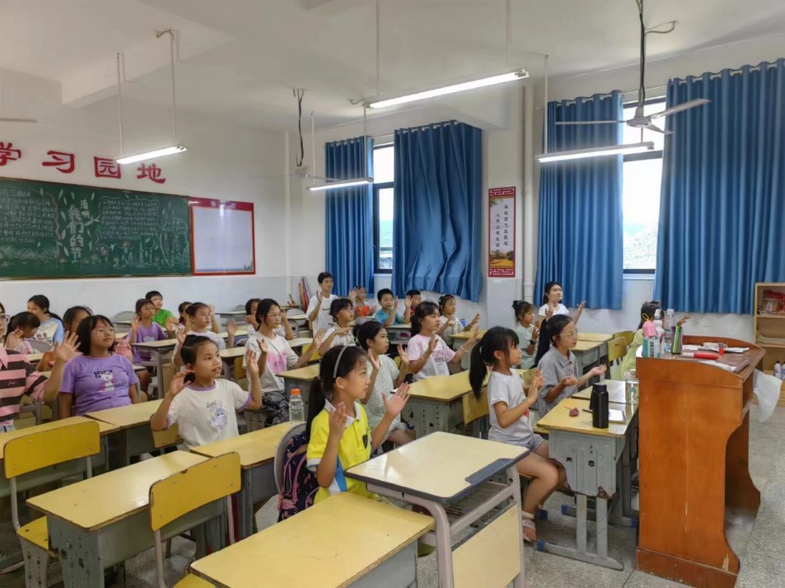 7月28日這一天,靈川縣海洋鄉(xiāng)中心小學(xué)的教室里洋溢著前所未有的活力與激情。一場以“大夢想家”為主題的手語操課,在孩子們的歡聲笑語中悄然拉開序幕。此次特別的手語操課程,由南京財(cái)經(jīng)大學(xué)“漓漓圓上草”支教團(tuán)隊(duì)精心策劃并傾情奉獻(xiàn),旨在通過手語的獨(dú)特魅力,激發(fā)孩子們內(nèi)心的夢想之火,同時(shí)促進(jìn)心靈的交流與融合。該課堂主要由南京財(cái)經(jīng)大學(xué)國際經(jīng)貿(mào)學(xué)院的哈國明和會計(jì)學(xué)院的陳妍教授。學(xué)生們跟隨老師的節(jié)奏以及多媒體播放的視頻教學(xué),用靈巧的雙手比劃著對未來的無限憧憬。大夢想家手語操不僅是簡單的動作模仿,更是對夢想對希望的無聲吶喊。通過這堂課,支教團(tuán)隊(duì)的每位老師期望能在孩子們心中種下夢想的種子,讓他們在未來的日子里生根發(fā)芽,茁壯成長,最終綻放出屬于自己的光彩。
