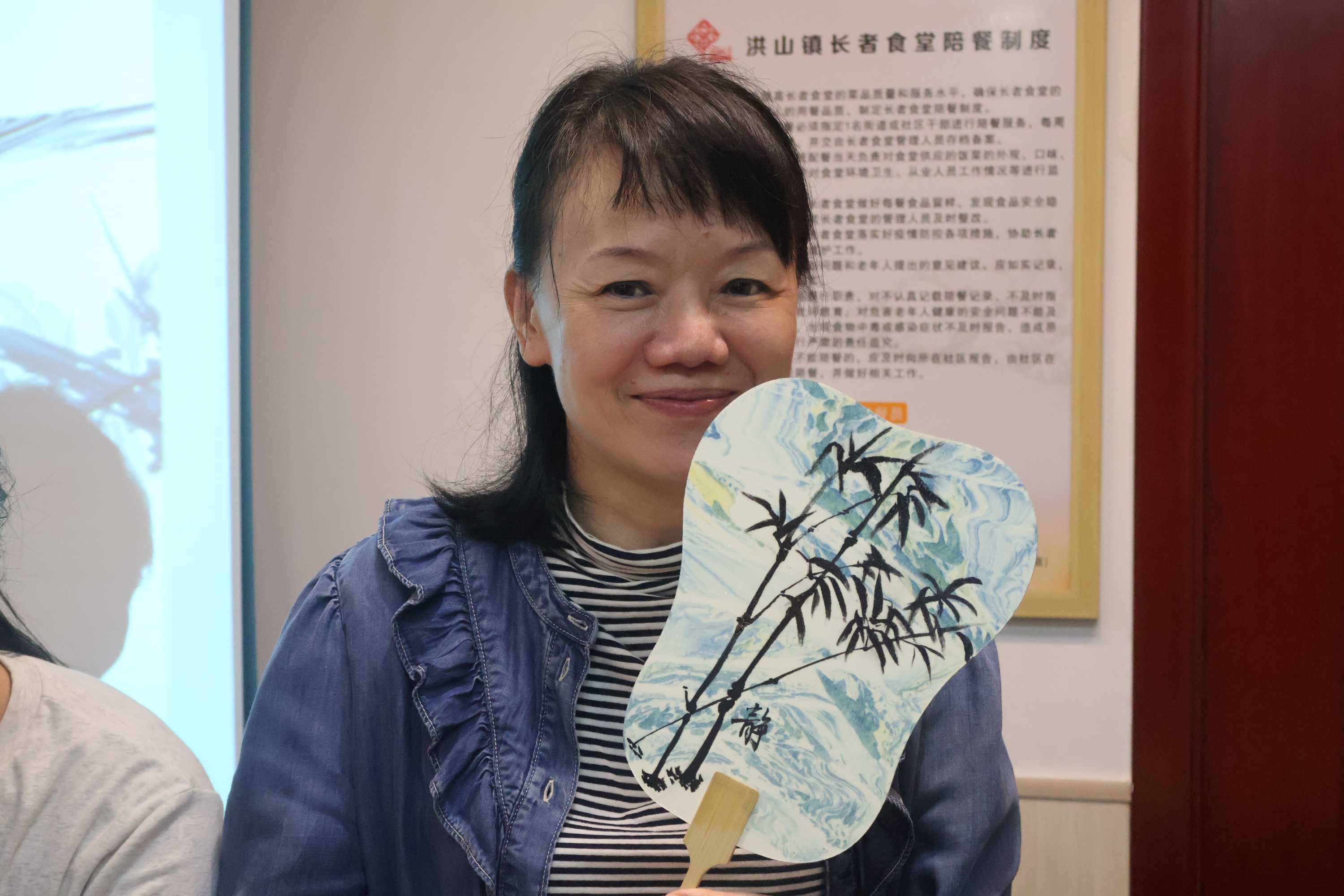 漆彩綻放,溫情相伴活動開始前,志愿者們向老人們展示琳瑯滿目的漆扇材料。很快,各式的扇子便吸引了長者們的目光,大家紛紛挑選自己心儀的扇子并展示,愉悅融洽的氛圍很快就彌漫在整個長者食堂。