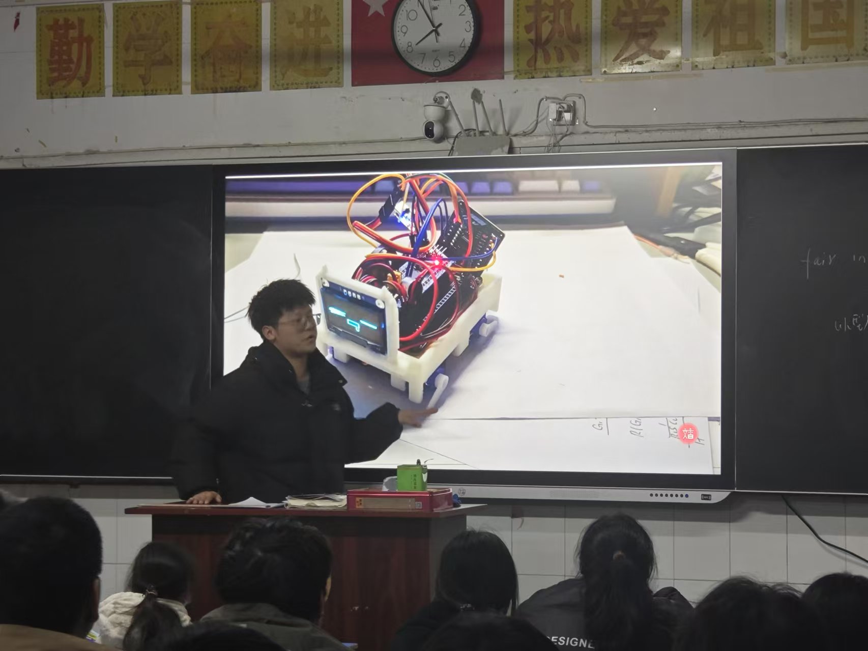 宣講隊隊員張宇翔上臺,分享自己眼中的長安大學生活。他展示了豐富多元的社團活動,在那里同學們能盡情施展才華、廣交好友;講述了意義非凡的志愿活動,分享助人的快樂與成長。同時,一些日常學習中的創(chuàng)意小發(fā)明,引得同學們目光聚焦 ,盡顯長大學子的創(chuàng)新實踐能力。他還通過多種形式,呈現(xiàn)大學課堂內(nèi)外的不同狀態(tài),讓大家直觀感受大學生活。他分享自己大學競賽收獲,講述在挑戰(zhàn)與機遇并存的賽程里,依靠團隊協(xié)作與個人拼搏取得佳績,實現(xiàn)技能與經(jīng)驗的雙重提升,鼓勵同學們大學期間積極參與競賽。