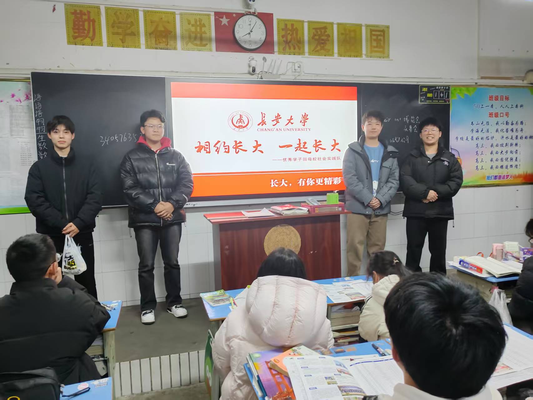宣講尾聲,長安大學湖北省第10宣講隊向高三十二班的同學們送上了衷心祝福。他們滿懷期待地表示,希望在不久的將來,能在長安大學與同學們相逢,共同開啟充實而精彩的大學篇章,在長安大學這片學術沃土上綻放光彩、追逐夢想 。