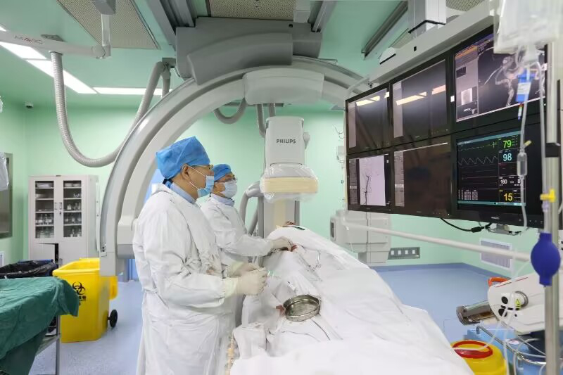 但鉆研之路并非坦途。“那時技術資料特別匱乏,不像現在有那么多資源可以利用,”姚文林回憶道。面對困難,他并沒有就此放棄,而是整日奔波去查找國內外理論資料。在豬頭、狗頭上反復進行穿刺訓練,盡管汗水浸透衣衫、手上布滿針眼,他也毫不在意。“有時候一練就是一整天,手上都是針眼。最后還是通過自備一些操作的設備,也就是穿刺針,才開始做手術。”日復一日的堅持,讓他的技術愈發精進。他深知,面對困難不能輕易放棄,身為醫生更不能給自己找理由,技術不行那就練。一次不行就兩次、三次,就算練了無數次,雙手傷痕累累,也得把技術練到位。