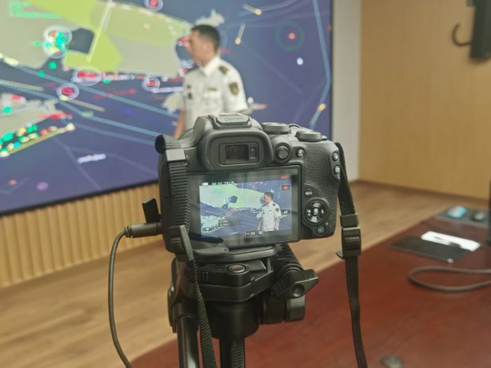 走進VTS指揮中心,實踐隊近距離了解了被譽為“洋山港神經(jīng)中樞”的船舶交通管理系統(tǒng)。該系統(tǒng)通過雷達、AIS與高清攝像頭聯(lián)動,可精準追蹤船舶動態(tài),及時預(yù)判并預(yù)警潛在碰撞風(fēng)險,為港區(qū)安全高效運轉(zhuǎn)筑牢技術(shù)屏障。