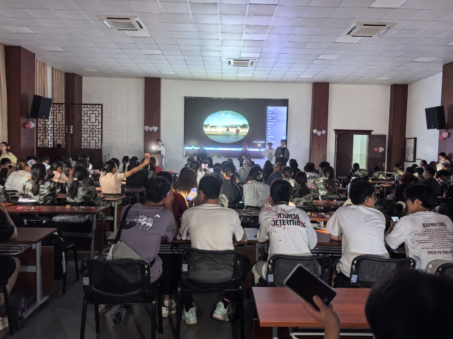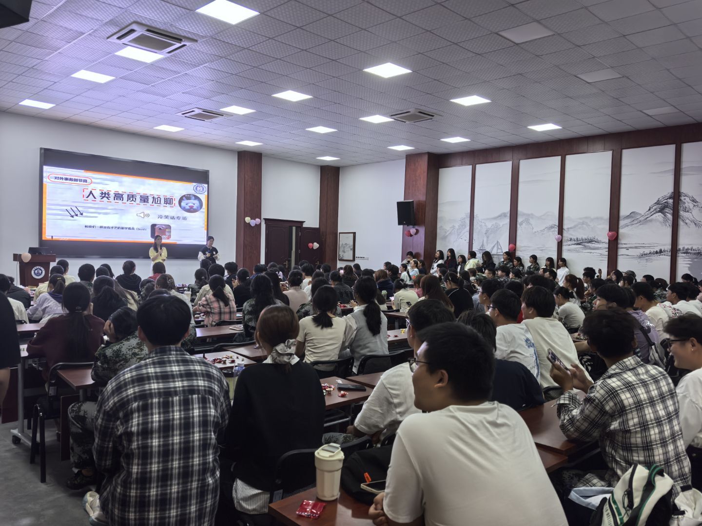 此次大會我們社團的成員積極參加,熱情洋溢的舞蹈,膾炙人口的歌曲,幽默搞笑的小品……都傳遞出我們對于新生的熱烈歡迎。在大會上的新生,與我們攜手共建良好歡樂的氛圍,新生們參與我的的傳艾草錘,emoji猜猜猜等小游戲。大會上更有大四大五學姐學長來助陣,他們帶來了他們的配音秀,歌曲以及對新生們的美好祝福。