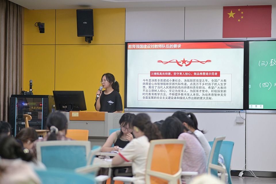 本次學習會采用集體學習與分組研討相結合的形式。首先,支部成員們進行了集中學習,隨后在熱烈的小組討論中深入交換意見,碰撞思想火花,共同提煉著作精髓。為鞏固學習成效,活動設置了知識檢驗環節,通過選擇題、填空題等多種形式,即時檢驗成員們對核心內容的理解掌握情況。在分享環節,多位支部成員踴躍發言,結合專業特色與個人感悟,暢談學習收獲,表達了將“心有大我、至誠報國”的理想信念融入未來教育事業的決心。支部成員陳哲弘同學從“做黨和人民滿意的好老師”出發,表示要提升自身的職業道德和專業素養,更好地為教育事業貢獻力量。