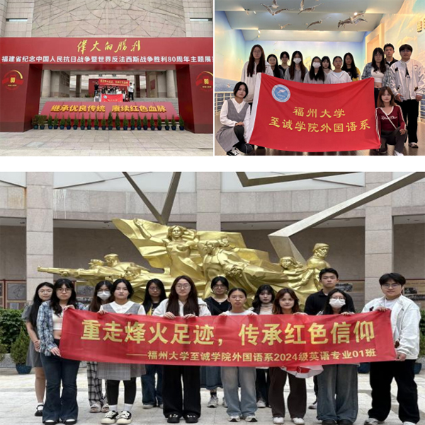 2025年,中國人民抗日戰爭勝利80周年的特殊節點如期而至,這段歷史鐫刻著民族的苦難與榮光,飽含著深沉的家國情懷。八十年前,萬千英烈挺身而出、舍生取義,用熱血鑄就民族獨立的豐碑,點亮和平的曙光;八十年后,接續紅色薪火、傳承精神力量,成為當代青年不可推卸的時代使命。為引導青年學子回望烽火歷程、厚植愛國情懷,福州大學至誠學院2024級外國語系英語1班團支部精心籌備了系列紅色團支部立項活動。活動形式豐富多樣,既有抗戰遺址的實地探訪,也有紅色故事的專題宣講,更有沉浸式的歷史感悟與互動式的思想碰撞。每一項安排都力求讓青年學子掙脫書本的束縛,在與歷史的近距離對話中感受先烈的赤誠信仰,在與同窗的深度共鳴中凝聚奮進的動能,讓紅色基因真正浸潤青春、融入血脈,在代代相傳中彰顯新時代的鮮活生命力。