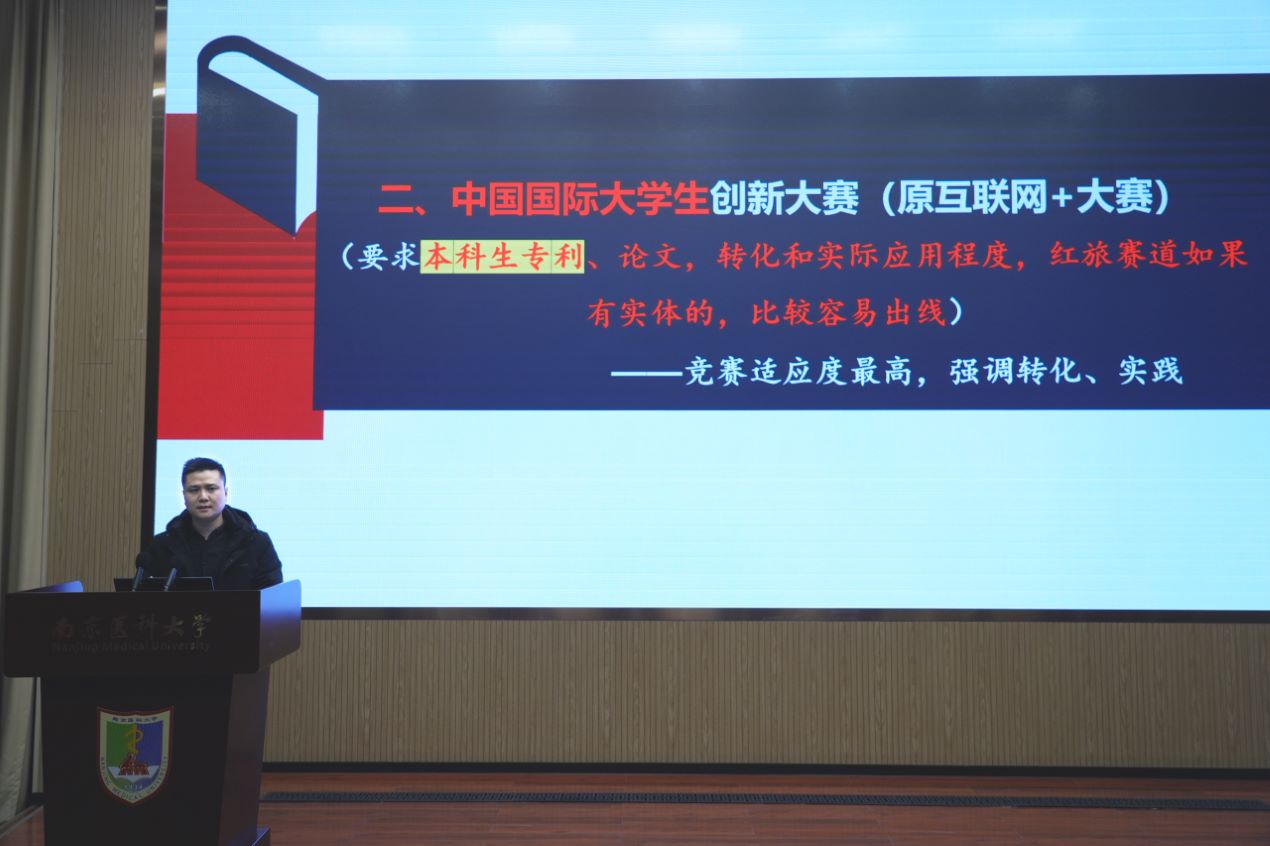 在頂層設計層面,學院著力構建雙創育人的“四梁八柱”。學院已成立由主要負責人牽頭的創新創業教育領導小組及學生社團,以保障雙創教育的有序開展。在平臺搭建方面,學院充分依托附屬腦科醫院、附屬眼科醫院、附屬腫瘤醫院三所三級甲等醫院的優質教育資源,為學生提供了從創意構思到實踐操作的全鏈條硬件支持。在課程體系建設上,學院定期舉辦“創新創業教育”、“思霖大講堂”等系列講座,實現了雙創教育與專業教育的深度融合。于師資隊伍建設方面,學院通過導師協同指導、科教融合培養體制,為學生科創項目提供全方位、個性化的學術支持,全面提升人才培養質量。