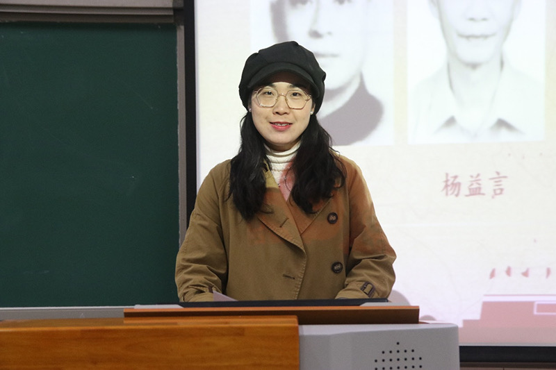 朱靜文老師以“弘揚紅巖精神,賡續紅色血脈”為主題首先為同學們開展了一堂精彩的主題團課。她以歌曲《紅梅贊》為引,講述了以江姐為代表的歌樂山英烈群體在重慶解放前夕殘酷的地下斗爭中所展現出的堅貞不屈、至死不渝的英雄氣概。隨后,朱老師從紅巖精神的形成、內涵和時代價值三個方面為新生進行詳細講解,并鼓勵新生不忘初心、牢記使命,永葆青年人的骨氣、志氣和底氣。