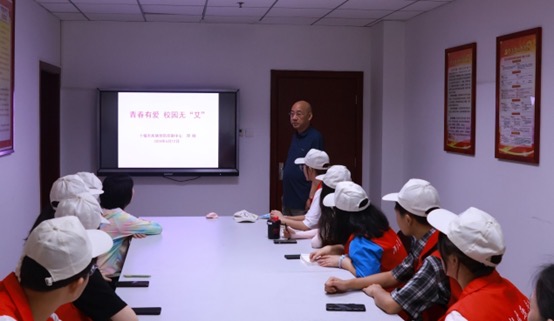 圖為鄧老師為實踐隊隊員講解艾滋形勢。中國青年網通訊員 朱小天 供圖