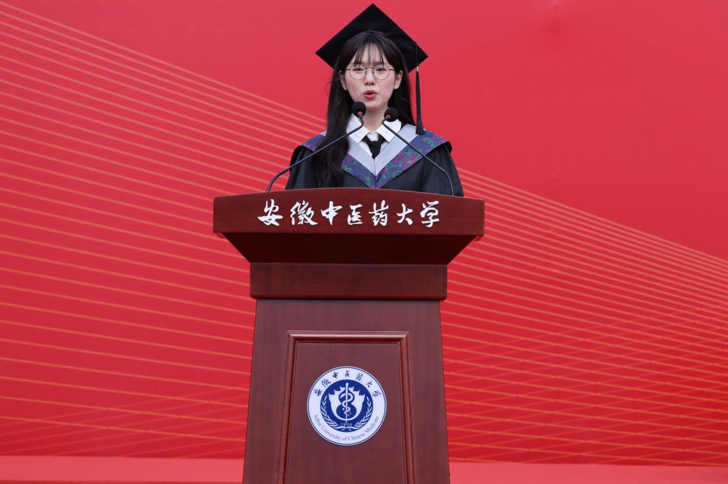 2024年7月2日上午,安徽中醫(yī)藥大學在少荃湖校區(qū)北區(qū)操場隆重舉行了2024年畢業(yè)典禮暨學位授予儀式,學校校長許釩、優(yōu)秀畢業(yè)生代表丁當當在典禮中致辭。全校領導、各單位負責人、2024屆畢業(yè)班輔導員、全體畢業(yè)生和后勤工作人員參加了典禮,共同歡送全體畢業(yè)生踏出校園,跨越山海,奔赴下一場旅程。
