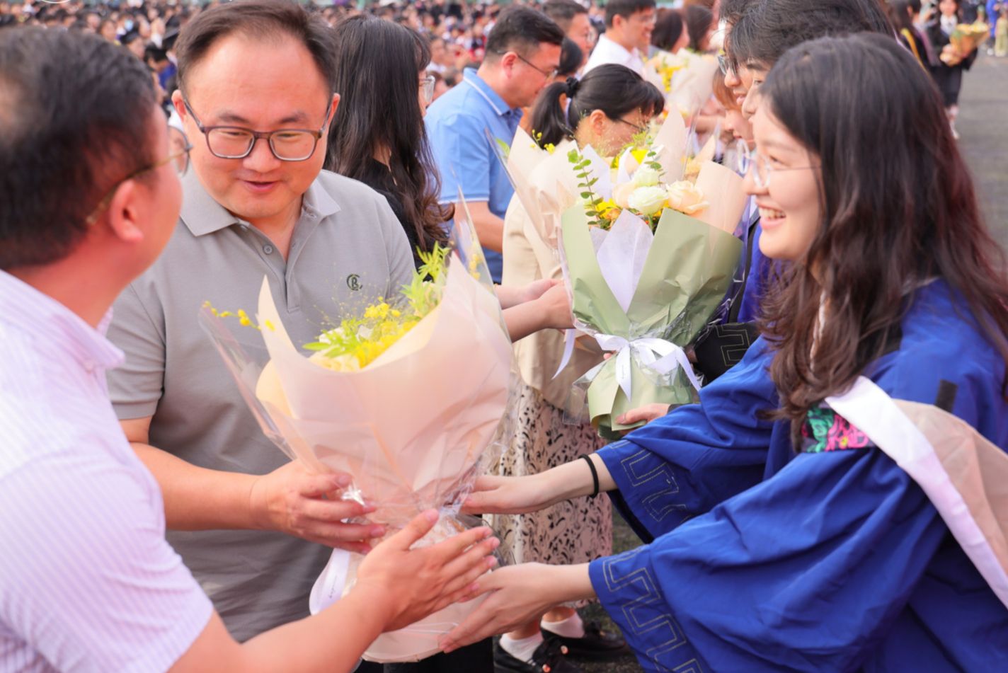 在這個充滿溫情的時刻,畢業(yè)生們紛紛向恩師敬獻鮮花,以表達對老師們辛勤付出的感激之情。那一束束鮮花,不僅傳遞著學生們的敬意,更象征著師生之間深厚的情誼。